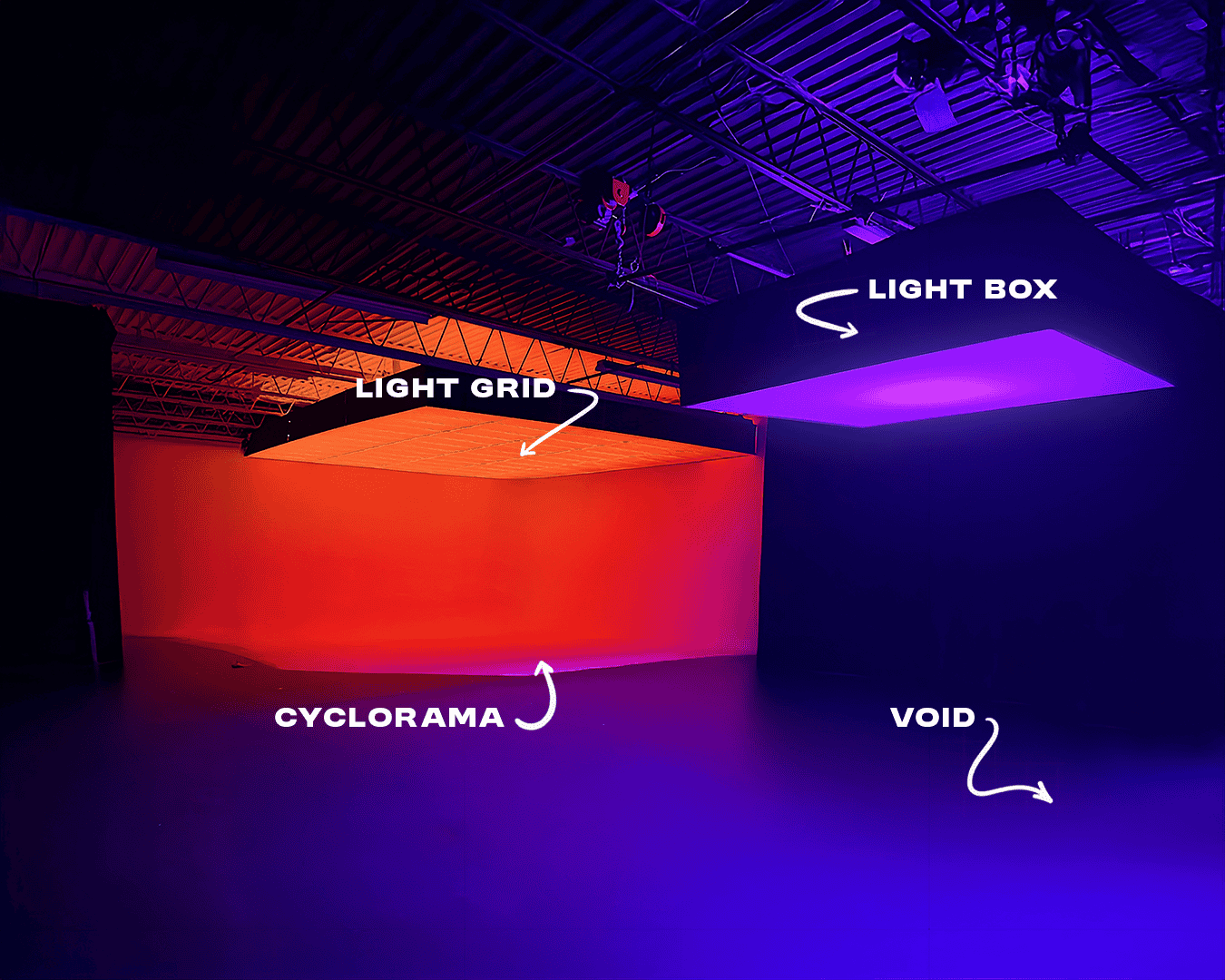 This Multi-purpose space has a full black-out VOID and a large Pre-Lit Cyclorama. The 3300sq studio is your creative playground, easily accessible with a drive in garage.